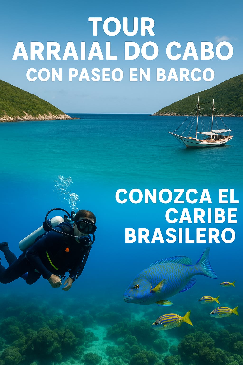 TOUR ARRAIAL DO CABO : Tour del dia completo con salida desde Rio de Janeiro. Paseio de barco con paradas para foto y baño con almuerzo incluido .